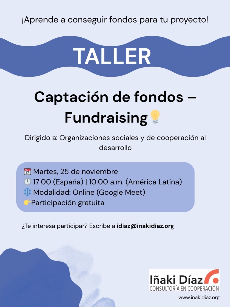 Desde la Consultora queremos poder compartir el próximo martes 25 de noviembre con nuestros socios locales en Hispanoamérica y con colaboradores nuestros para hablar y recoger herramientas entorno a la captación de fondos privados e [...]